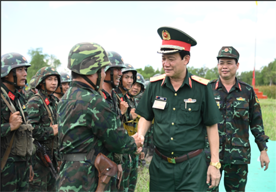 | Lt. Gen. Ho Van Thai, Political Commissar of Military Region 9 encourages forces during the City’s defensive zone exercise of 2023 |