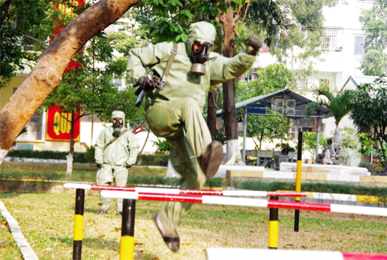In the training process, the Brigade has directed its affiliates to closely follow the motto of “basics, practicality, solidity”, organise comprehensive but focalised and specialised training courses, take specialised chemical training as the centre, and regard training courses on responding to chemical, biological, radiological, and nuclear incidents in peacetime and ensuring chemical support in wartime as the foundation. Importance has been attached to training troops to master the existing and new technical equipment in forms of warfare using weapons of mass destruction. As for commands and offices, great value has been attached to improving their operational staff work and methods of holding and directing exercises on maps and in the field, making them capable of giving sound advice on operations and training, and enabling them to grasp regulations on commanding, managing, and training their affiliated units. Concerning detachment-level cadres, the Brigade has concentrated on bettering their command capability, working style, and methods of designing, approving, and rehearsing lesson plans. Regarding professional service men/women and technical staff, the Brigade has improved their comprehensive and specialised knowledge according to their positions and trained them to master the existing, new, modern technical equipment. Right after new recruit training courses, the Brigade has proactively organised specialised training courses, ensuring that new soldiers would quickly adapt themselves to specialised training formations. In the process, the Brigade has concentrated on classifying soldiers by group, promoting the role of model groups, integrating modern training into traditional training, aligning basic training with advanced training, enabling troops to master individual movements as the basis for detachment-level joint training, conducting training rotations scientifically to make use of time, materials, and training grounds. It has increased training and exercises using simulation methods and real-time automated command systems, while practising projects to respond to non-traditional security challenges and chemical, biological, radiological, nuclear, and environmental incidents.