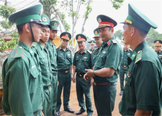 | Military Region 7 Command and the PMC inspect Dak Tien border guard post in July 2025 |