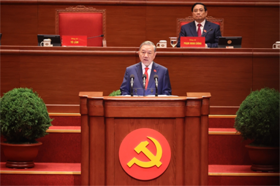 | General Secretary To Lam delivers the 13th Party Central Committee’s Report at the 14th National Party Congress (photo: baochinhphu.vn) |