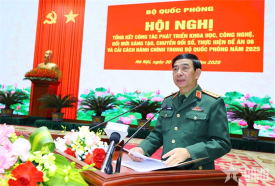 Sáng 30/12, Bộ Quốc phòng tổ chức Hội nghị tổng kết công tác phát triển khoa học, công nghệ, đổi mới sáng tạo, chuyển đổi số (KHCN, ĐMST, CĐS), thực hiện Đề án 06 và cải cách hành chính (CCHC) trong Bộ Quốc phòng năm 2025. Đại tướng Phan Văn Giang, Ủy viên Bộ Chính trị, Phó Bí thư Quân ủy Trung ương, Bộ trưởng Bộ Quốc phòng, Trưởng Ban chỉ đạo của Bộ Quốc phòng về phát triển KHCN, ĐMST, CĐS, thực hiện Đề án 06 và CCHC chủ trì hội nghị.