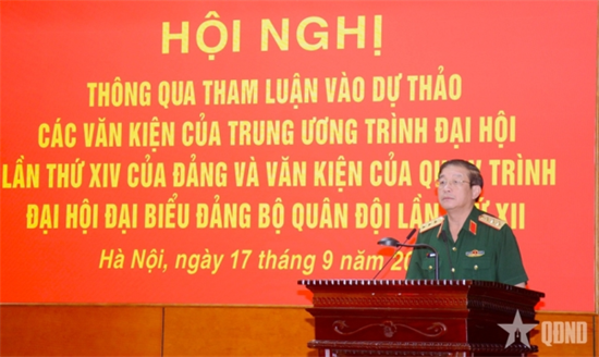 Chiều 17/9, Tổng cục Chính trị Quân đội nhân dân (QĐND) Việt Nam tổ chức Hội nghị thông qua tham luận vào dự thảo các văn kiện của Trung ương trình Đại hội XIV của Đảng theo hình thức trực tiếp tại điểm cầu Sở chỉ huy Tổng cục Chính trị kết nối trực tuyến tới 47 điểm cầu toàn quân.