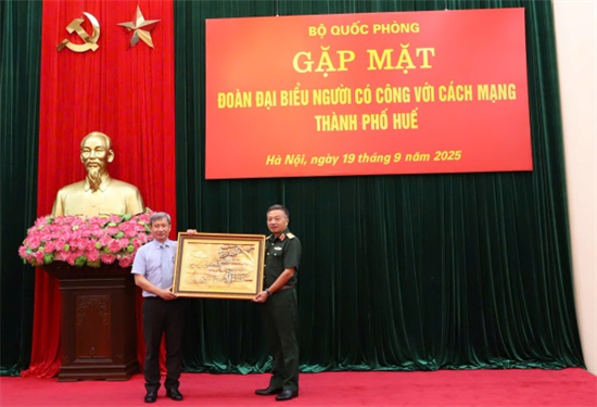 Sáng 19/9, tại Hà Nội, Bộ Quốc phòng tổ chức gặp mặt Đoàn đại biểu Người có công với cách mạng thành phố Huế. Thừa ủy quyền của Thủ trưởng Bộ Quốc phòng, Thượng tướng Lê Quang Minh, Phó Chủ nhiệm Tổng cục Chính trị Quân đội nhân dân Việt Nam chủ trì buổi gặp mặt.