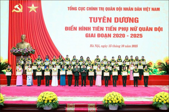 Ghi nhận, tôn vinh những thành tích đó, Đảng, Nhà nước, Quân đội và các bộ, ngành đã trao tặng phụ nữ Quân đội những phần thưởng cao quý: 01 cá nhân được phong tặng danh hiệu Anh hùng LLVT nhân dân; 03 tập thể và 04 cá nhân đoạt Giải thưởng Phụ nữ Việt Nam; 01 cá nhân đoạt Giải thưởng Nguyễn Thị Định; 270 cá nhân được tặng Kỷ niệm chương Vì sự phát triển của phụ nữ Việt Nam; 588 tập thể được nhận Cờ thi đua của Tổng cục Chính trị; 1.065 cá nhân đạt danh hiệu “Cán bộ/hội viên phụ nữ xuất sắc tiêu biểu”. 5 năm liên tục, phụ nữ Quân đội được Trung ương Hội Liên hiệp Phụ nữ Việt Nam tặng Cờ thi đua xuất sắc tiêu biểu. Ban Phụ nữ Quân đội vinh dự nhận Huân chương Bảo vệ Tổ quốc hạng Nhì, nhiều Bằng khen của Bộ Quốc phòng, Bộ Nội vụ, Bộ Giáo dục và Đào tạo. Những thành tích ấy khẳng định phụ nữ Quân đội xứng đáng với 10 chữ vàng “Yêu nước, đoàn kết, sáng tạo, trung hậu, đảm đang” mà Quân ủy Trung ương đã trao tặng.