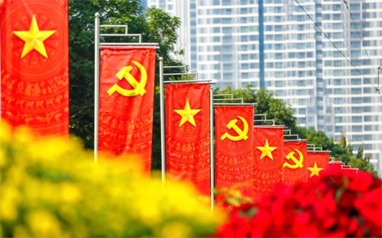 “Dưới lá cờ vẻ vang của Đảng” cả nước, cả dân tộc, cả hệ thống chính trị “chung sức, đồng lòng quyết tâm thực hiện thắng lợi các mục tiêu phát triển đất nước đến năm 2030”. Kỷ niệm 100 năm thành lập Đảng: là nước đang phát triển, có công nghiệp hiện đại, thu nhập trung bình cao; kỷ niệm 100 năm thành lập nước vào năm 2045 là nước phát triển, có thu nhập cao; đồng thời, “Dưới lá cờ vẻ vang của Đảng”, hơn 100 triệu người như một: “tự cường, tự tin tiến mạnh trong kỷ nguyên vươn mình của dân tộc, vì hoà bình, độc lập, dân chủ, giàu mạnh, phồn vinh, văn minh, hạnh phúc, vững bước đi lên chủ nghĩa xã hội”. “Chung sức, đồng lòng...” là tiền đề, điều kiện rất quan trọng để “tự cường, tự tin tiến mạnh trong kỷ nguyên vươn mình của dân tộc,… vững bước đi lên chủ nghĩa xã hội”; đồng thời “tự cường, tự tin,…” là nền tảng, cơ sở vững chắc, mục tiêu, định hướng chiến lược để chúng ta có động lực, quyết tâm chính trị cao, hành động quyết liệt “chung sức, đồng lòng quyết tâm thực hiện thắng lợi các mục tiêu phát triển đất nước đến năm 2030”.