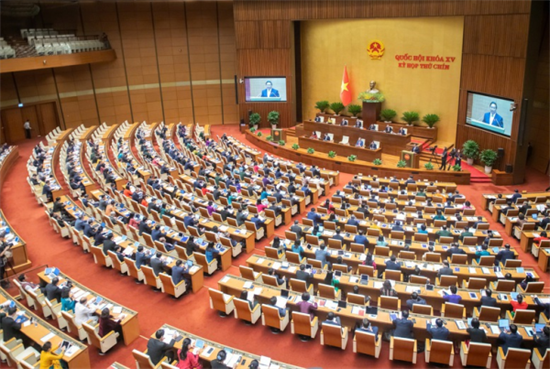 Quốc hội đã kịp thời thể chế hóa các chủ trương của Đảng thành chính sách và pháp luật, phản ánh chân thực ý chí, nguyện vọng của cử tri và Nhân dân, bám sát yêu cầu của cuộc sống. Với sự nỗ lực, đổi mới của Quốc hội, công tác lập pháp không ngừng được cải thiện, nâng cao hiệu quả, chất lượng. Đến nay, hệ thống pháp luật nước ta đã bao quát toàn diện, cơ bản điều chỉnh tất cả các lĩnh vực của đời sống xã hội, phù hợp với chuẩn mực thế giới, với gần 300 bộ luật, luật đang có hiệu lực thi hành. Một trong những thành tựu lớn trong công tác lập pháp là Quốc hội đã thông qua 05 bản Hiến pháp, tạo lập nền tảng chính trị, pháp lý cho sự phát triển ổn định và bền vững của đất nước. Nhiều bộ luật, luật lớn về dân sự, kinh doanh, thương mại, hành chính, hình sự, tố tụng, giải quyết tranh chấp đã được ban hành và hoàn thiện, có ý nghĩa quan trọng, tác động sâu rộng đến đời sống kinh tế - xã hội. Qua đó, tạo cơ sở pháp lý cho việc đổi mới, nâng cao hiệu lực, hiệu quả hoạt động của bộ máy nhà nước từ trung ương đến cơ sở; phát huy dân chủ xã hội chủ nghĩa và quyền làm chủ của Nhân dân; thúc đẩy nền kinh tế thị trường định hướng xã hội chủ nghĩa, tôn trọng quyền tự do kinh doanh, bình đẳng, theo pháp luật; bảo vệ, bảo đảm quyền con người, quyền công dân; bảo đảm an sinh xã hội, bảo vệ môi trường; thúc đẩy tiến bộ và công bằng xã hội, nâng cao đời sống vật chất và tinh thần của Nhân dân; đẩy mạnh cải cách tư pháp; tăng cường hiệu quả đấu tranh phòng, chống tội phạm; củng cố quốc phòng, bảo vệ chủ quyền, an ninh của đất nước, bảo vệ chế độ, giữ vững ổn định chính trị, bảo đảm trật tự, an toàn xã hội; chủ động, tích cực hội nhập quốc tế sâu rộng.