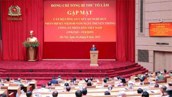 Sáng 16/8, tại trụ sở Bộ Công an, 96 Nguyễn Du, Hà Nội, Tổng Bí thư Tô Lâm đã gặp mặt cán bộ Công an cấp cao nghỉ hưu nhân dịp Kỷ niệm 80 năm Ngày truyền thống Công an nhân dân Việt Nam (19/8/1945-19/8/2025).