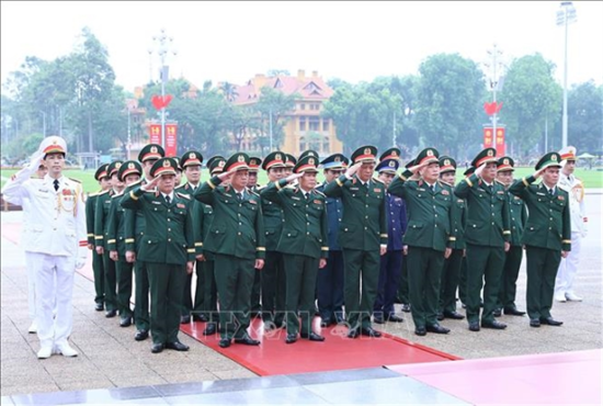 Sau đó, các đoàn đại biểu Quân ủy Trung ương - Bộ Quốc phòng; Đảng ủy Công an Trung ương - Bộ Công an; Thành ủy, HĐND, UBND TP Hà Nội,... đã đến đặt vòng hoa, vào Lăng viếng Chủ tịch Hồ Chí Minh.