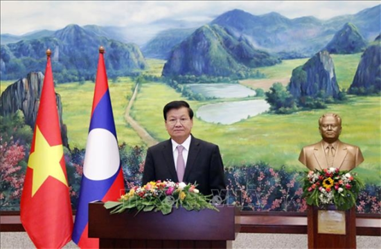 Nhân dịp trọng đại này, thay mặt Trung ương Đảng, Chính phủ và nhân dân Lào, tôi xin bày tỏ sự biết ơn sâu sắc tới Đảng, Nhà nước và nhân dân Việt Nam anh em đã ủng hộ, giúp đỡ quý báu, to lớn, có hiệu quả và kịp thời đối với sự nghiệp cách mạng Lào trong suốt thời gian qua. Đảng, Nhà nước và nhân dân Lào sẽ tiếp tục cùng với Đảng, Nhà nước và nhân dân Việt Nam làm hết sức mình để tiếp tục gìn giữ, phát huy mối quan hệ hiếm có này mãi vững bền và đơm hoa kết trái, vì lợi ích chung của hai đất nước cũng như để góp phần vào sự nghiệp xây dựng hòa bình, ổn định và hợp tác, phát triển ở khu vực và trên thế giới.