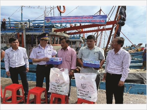 Tạp chí Quốc phòng toàn dân điện tử trân trọng giới thiệu một số hình ảnh về công tác tuyên truyền biển, đảo kết hợp với tiến hành công tác dân vận của Vùng Cảnh sát Biển 3./.