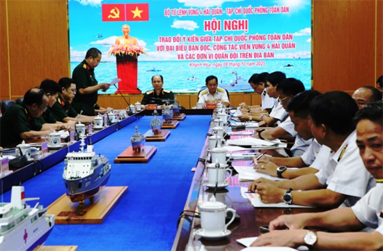 Thực hiện Kế hoạch công tác năm 2025 và được sự thống nhất của Bộ Tư lệnh Quân chủng Hải quân, sáng ngày 08/10/2025, tại tỉnh Khánh Hòa, Ban Biên tập Tạp chí Quốc phòng toàn dân phối hợp với Bộ Tư lệnh Vùng 4 Hải quân tổ chức Hội nghị trao đổi ý kiến giữa Tạp chí với đại biểu bạn đọc, cộng tác viên thuộc Vùng 4 và một số đơn vị, địa phương trên địa bàn tỉnh Khánh Hòa. Hội nghị diễn ra trong không khí cởi mở, trách nhiệm và phấn khởi hướng tới Kỷ niệm 50 năm Ngày thành lập Vùng 4 Hải quân. Đây là dịp để Ban Biên tập Tạp chí gặp gỡ, lắng nghe ý kiến đóng góp tâm huyết của bạn đọc, cộng tác viên nhằm tiếp tục nâng cao chất lượng nội dung, hình thức của Tạp chí, đáp ứng tốt hơn yêu cầu tuyên truyền, giáo dục, nghiên cứu lý luận, tổng kết thực tiễn trong tình hình mới.