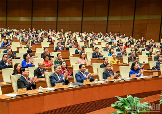 Cùng với đó, Quốc hội đã ban hành nhiều đạo luật quan trọng về hoàn thiện nhà nước pháp quyền xã hội chủ nghĩa; tinh gọn tổ chức bộ máy, sắp xếp lại các đơn vị hành chính; phòng chống tham nhũng, lãng phí, tiêu cực; nhất là trên các lĩnh vực: tài chính-ngân sách, văn hóa-xã hội, y tế-giáo dục, đảm bảo an sinh xã hội; tài nguyên-môi trường; khoa học-công nghệ; đổi mới sáng tạo, chuyển đổi số; quốc phòng, an ninh, đối ngoại, hội nhập quốc tế…, tạo nền tảng quan trọng để đất nước ta bước vào kỷ nguyên phát triển mới.