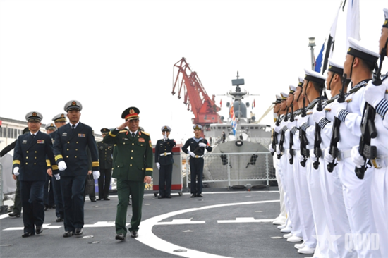 Ngay sau khi đến Cảng Phòng Thành, Đại tướng Phan Văn Giang và Thượng tướng Đổng Quân tham quan khu trưng bày hình ảnh về các chuyến tuần tra liên hợp trước đây giữa hải quân hai nước; tham quan Tàu 568 của Hải quân Trung Quốc, Tàu 015 của Hải quân Việt Nam và thăm hỏi, động viên chỉ huy, sĩ quan, thủy thủ hai bên.