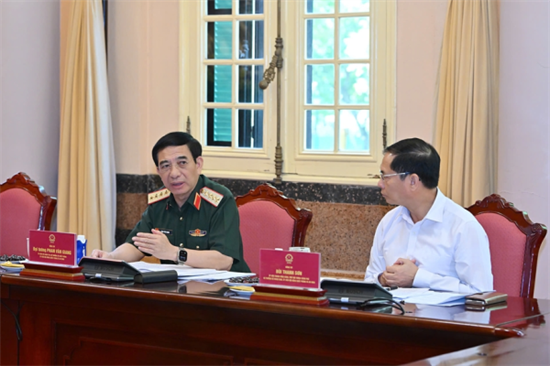 Cùng dự có các đồng chí Ủy viên Hội đồng: Đại tướng Phan Văn Giang, Ủy viên Bộ Chính trị, Phó Bí thư Quân ủy Trung ương, Bộ trưởng Bộ Quốc phòng; Đại tướng Lương Tam Quang, Ủy viên Bộ Chính trị, Bộ trưởng Bộ Công an; Bùi Thanh Sơn, Ủy viên Trung ương Đảng, Phó Thủ tướng Chính phủ, Bộ trưởng Bộ Ngoại giao; các thành viên cơ quan giúp việc Hội đồng.