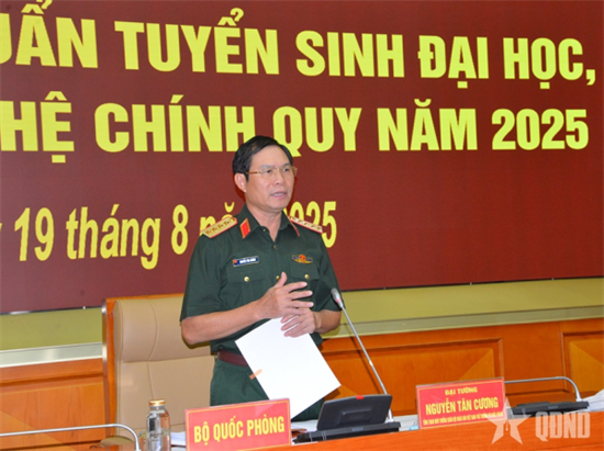 Sáng 19/8, Đại tướng Nguyễn Tân Cương, Ủy viên Trung ương Đảng, Ủy viên Thường vụ Quân ủy Trung ương, Tổng Tham mưu trưởng Quân đội nhân dân Việt Nam, Thứ trưởng Bộ Quốc phòng, Trưởng ban Tuyển sinh quân sự Bộ Quốc phòng chủ trì Hội nghị xét duyệt điểm chuẩn tuyển sinh đại học, cao đẳng quân sự hệ chính quy năm 2025.
