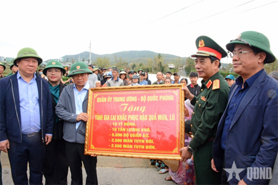 Nhân dịp này, Đại tướng Phan Văn Giang đã trao 100 suất quà tặng Nhân dân hai xã Tuy Phước và Tuy Phước Đông bị thiệt hại do mưa lũ. Quân ủy Trung ương, Bộ Quốc phòng hỗ trợ tỉnh Gia Lai 10 tỷ đồng, 10 tấn lương khô, 5.000 bộ quần áo, 2.500 màn tuyn đôi và 2.500 màn tuyn đơn.