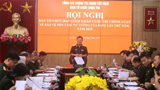 Chiều 02/6, tại Hà Nội, Ban Tổ chức Cuộc thi Chính luận về bảo vệ nền tảng tư tưởng của Đảng cấp toàn quân lần thứ 5, năm 2025 tổ chức Hội nghị Ban Tổ chức, Ban Giám khảo Cuộc thi Chính luận về bảo vệ nền tảng tư tưởng của Đảng lần thứ 5, năm 2025. Đồng chí Thiếu tướng Tống Văn Thanh, Phó Cục trưởng Cục Tuyên huấn, Phó Trưởng ban Thường trực Ban Tổ chức Cuộc thi chủ trì Hội nghị. Tham dự Hội nghị có các đồng chí trong Ban Tổ chức, Ban Giám khảo, Tổ Thư ký, cán bộ giúp việc Cuộc thi và phóng viên các cơ quan thông tấn, báo chí trong Quân đội.