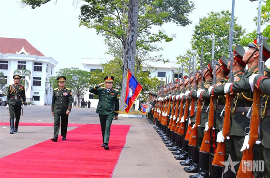 Chiều 22/4, Thượng tướng Saichay Kommasith, Ủy viên Trung ương Đảng Nhân dân Cách mạng Lào, Thứ trưởng Bộ Quốc phòng, Tổng Tham mưu trưởng Quân đội nhân dân (QĐND) Lào chủ trì Lễ đón chính thức Đại tướng Nguyễn Tân Cương, Ủy viên Trung ương Đảng, Ủy viên Thường vụ Quân ủy Trung ương, Tổng Tham mưu trưởng, Thứ trưởng Bộ Quốc phòng cùng đoàn đại biểu cấp cao QĐND Việt Nam sang thăm chính thức nước Cộng hòa Dân chủ nhân dân Lào.