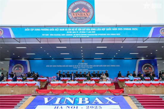 Sáng 11/11, tại Trung tâm Huấn luyện Quân sự quốc gia 4 đã diễn ra Lễ khai mạc Diễn tập song phương giữa Việt Nam và Ấn Độ về gìn giữ hòa bình Liên hợp quốc năm 2025 (VINBAX 2025) do Bộ Quốc phòng Việt Nam phối hợp với Bộ Quốc phòng Ấn Độ tổ chức.
