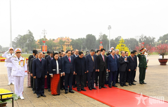 Sáng 13/2, nhân dịp Tết Nguyên đán Bính Ngọ 2026, Đoàn đại biểu lãnh đạo, nguyên lãnh đạo Đảng, Nhà nước, Mặt trận Tổ quốc Việt Nam, Quân ủy Trung ương, Bộ Quốc phòng đã đặt vòng hoa, vào Lăng viếng Chủ tịch Hồ Chí Minh và dâng hoa tưởng niệm các Anh hùng liệt sĩ tại Đài tưởng niệm các Anh hùng liệt sĩ (đường Bắc Sơn, Hà Nội).