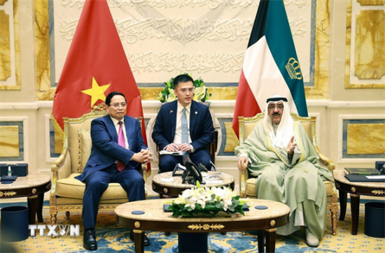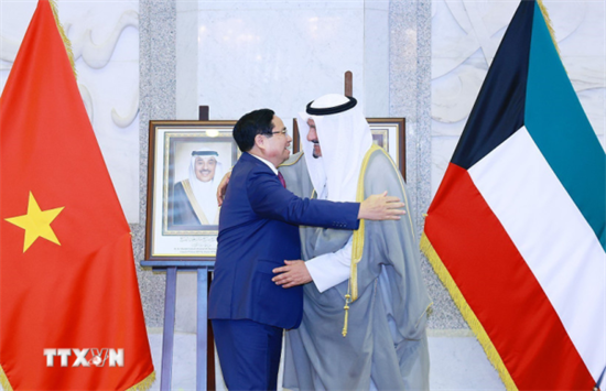Theo đặc phái viên TTXVN, trong khuôn khổ chuyến thăm chính thức Nhà nước Kuwait của Thủ tướng Phạm Minh Chính, hai bên đã ra Tuyên bố chung về thiết lập Đối tác Chiến lược giữa Nhà nước Kuwait và Nước Cộng hòa Xã hội chủ nghĩa Việt Nam.