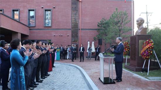 Tổng Bí thư Tô Lâm bày tỏ xúc động khi dự Lễ khánh thành tượng Chủ tịch Hồ Chí Minh và khẳng định việc khánh thành công trình rất có ý nghĩa trong dịp kỷ niệm 135 năm Ngày sinh Chủ tịch Hồ Chí Minh và cả nước đang hướng tới kỷ niệm 80 năm Cách mạng Tháng Tám thành công và Quốc khánh nước Cộng hòa xã hội chủ nghĩa Việt Nam. Tượng Chủ tịch Hồ Chí Minh đặt trong khuôn viên Đại sứ quán Việt Nam tại Hàn Quốc khiến mỗi người cảm thấy Bác gần gũi hơn, ghi nhớ những lời Bác dạy và quyết tâm thực hiện những mong ước của Người.