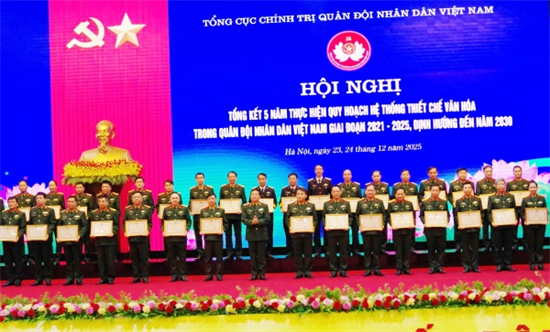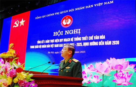 Sáng 24/12, tại Hà Nội, Tổng cục Chính trị Quân đội nhân dân Việt Nam tổ chức Hội nghị Tổng kết 5 năm thực hiện Quy hoạch hệ thống thiết chế văn hóa trong Quân đội nhân dân Việt Nam giai đoạn 2021 - 2025, định hướng đến năm 2030. Đồng chí Thượng tướng Trương Thiên Tô, Phó Chủ nhiệm Tổng cục Chính trị Quân đội nhân dân Việt Nam chủ trì Hội nghị. Tham dự Hội nghị có đại biểu lãnh đạo các cơ quan chức năng thuộc Bộ Quốc phòng, Tổng cục Chính trị; đại biểu lãnh đạo, chỉ huy và cán bộ phụ trách công tác văn hóa, văn nghệ của các cơ quan, đơn vị trong toàn quân.