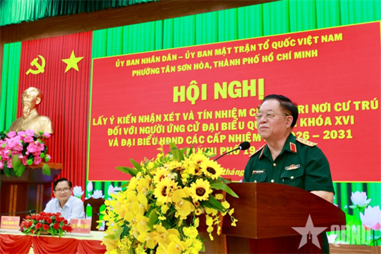 Ngày 8/2, UBND, Ủy ban MTTQ Việt Nam phường Tân Sơn Hòa, TP Hồ Chí Minh đã tổ chức Hội nghị lấy ý kiến nhận xét và tín nhiệm của cử tri nơi cư trú đối với người ứng cử đại biểu Quốc hội khóa XVI nhiệm kỳ 2026 - 2031 tại khu phố 19, là Đại tướng Nguyễn Trọng Nghĩa, Ủy viên Bộ Chính trị, Bí thư Trung ương Đảng, Ủy viên Thường vụ Quân ủy Trung ương, Chủ nhiệm Tổng cục Chính trị.