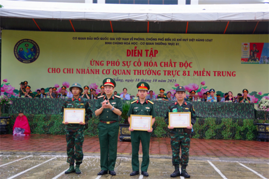 化学兵种首长为参加DC-25演习的优秀集体授予荣誉奖状