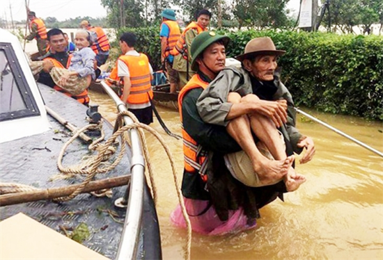 | 军队官兵在洪水中进行疏散(图自人民军报) |