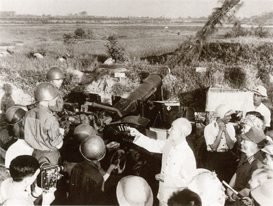 | 胡志明主席探望慰问守护首都河内的防空部队(1966年9月,资料图片) |