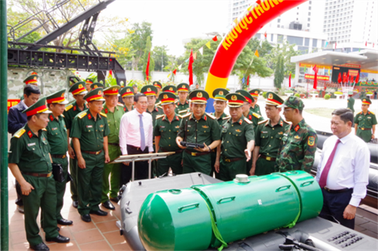 | 总参谋部领导、特种工兵兵种领导及各位代表参观第5水上特工旅团成果展示 |