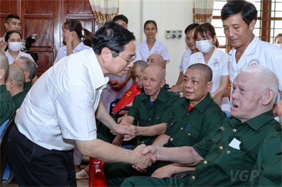 | 政府总理范明正走访宁平省金榜伤残军人疗养中心,并向该中心的伤残军人、革命有功者家属、抚恤政策家庭赠送礼品。(图片来源:baochinhphu.vn) |