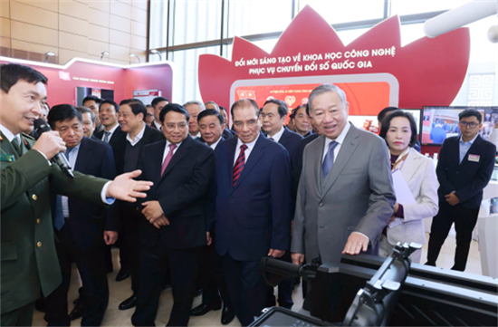 | 越共中央总书记苏林同党、国家领导人和与会代表出席全国科技创新突破发展与国家数字化转型工作会议。图自越通社 |