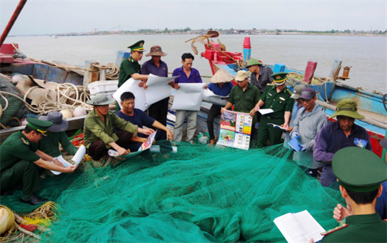 在落实上述措施的同时,省边防部队还大力推进宣传动员工作,积极引导群众严格遵守法律法规,广泛参与防范打击罪犯活动。据此,各机关单位与地方党委、政府以及各级部门、团体密切协作,制定宣传计划并严格组织实施。宣传内容重点围绕禁毒与防范打击罪犯的法律规定、《越南边防法》、越南政府于2015年9月3日颁布的关于管理越南社会主义共和国海上边界地区内的人员、船舶活动的规定的第71/2015/NĐ-CP号法令,以及一系列与维护海洋主权、生态环境和国家海洋权益相关的法律文件;同时宣传毒品、刑事罪犯、拐卖人口、走私、商业欺诈、假货、高科技罪犯及非法、不申报、不按规定捕捞(IUU)等各类罪犯活动的作案手法和特点。为提升宣传实效,省边防部指挥部要求各机关单位不断创新宣传动员的形式与方法,紧密结合大众传媒宣传、集中会议、发放宣传资料,以及深入居民区、码头、船只停泊点开展流动宣传,并通过多种宣传模式,如“边防广播喇叭”、“安全船队小组”、“码头自管小组”等,引导和动员群众认真落实党的路线、政策和国家法律,积极参与防范打击、举报罪犯行为。同时,组织沿海居民、渔船主签署不侵犯外国海域进行捕捞、不违法作业、不包庇、不协助罪犯的承诺书。在此基础上,省边防部队还大力推动“与渔民同行,扬帆出海、护海”、“建设团结之家”等运动,积极参与消除临时住房、破旧住房等民生项目。通过上述举措,有效巩固军民团结关系,提升干部、群众的法律意识和守法自觉,使广大人民群众真正成为边防部队在防范打击罪犯斗争中的“千里眼”和“顺风耳”,积极配合支持边防部队防范打击各类罪犯。