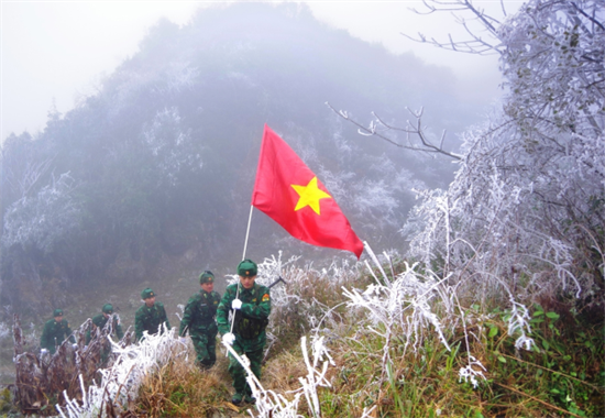 | 新盖边防屯官兵边境线和界碑巡查活动。图自baodantoc.vn |