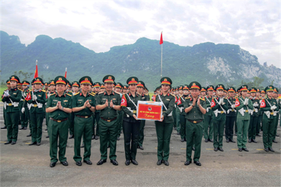 | 第一军区司令部首长向北宁省军事指挥部所属地区防御指挥部授予“决胜军旗” |