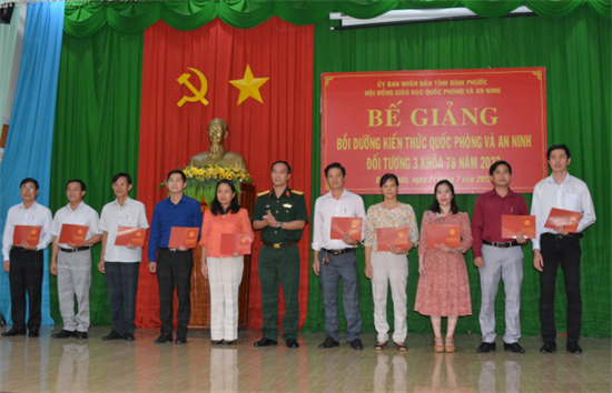 | 平福省军事指挥部首长为国防安全教育学员颁受证书 |
